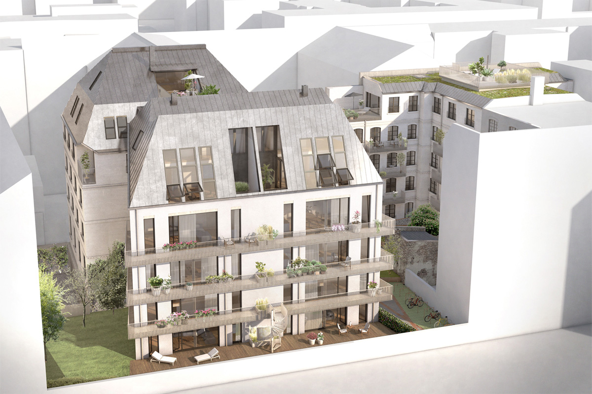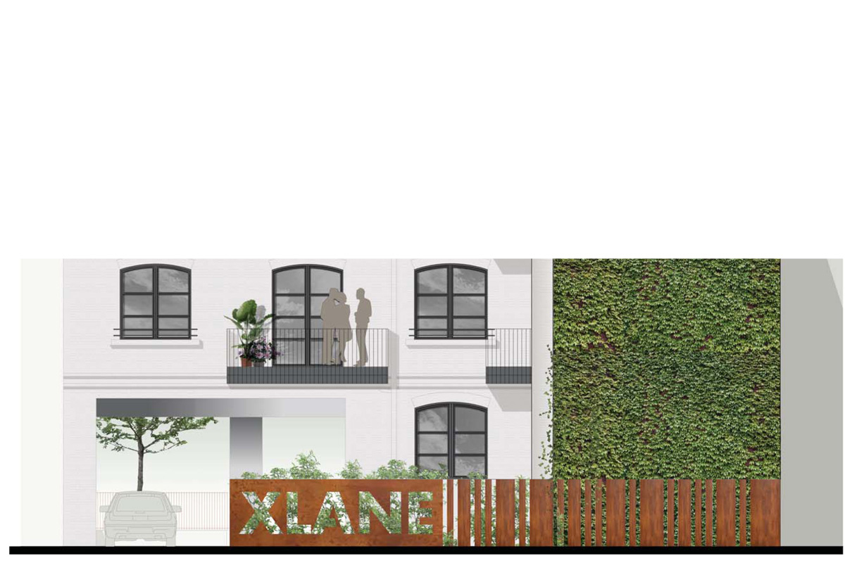 Mit seinen prägnanten, teils gezackten Zinkdächern und Materialien wie geschlämmtem Mauerwerk und sichtbaren Stahlträgern im Bereich der historischen Bausubstanz sowie Cortenstahl und sichtbaren Betonflächen im Garten und Atelierhaus soll ein atmosphärisch dichtes Bild des Hofgartenensembles entstehen, der einen revitalisierten Ort für kreative Wohn- und Arbeitsräume schafft.