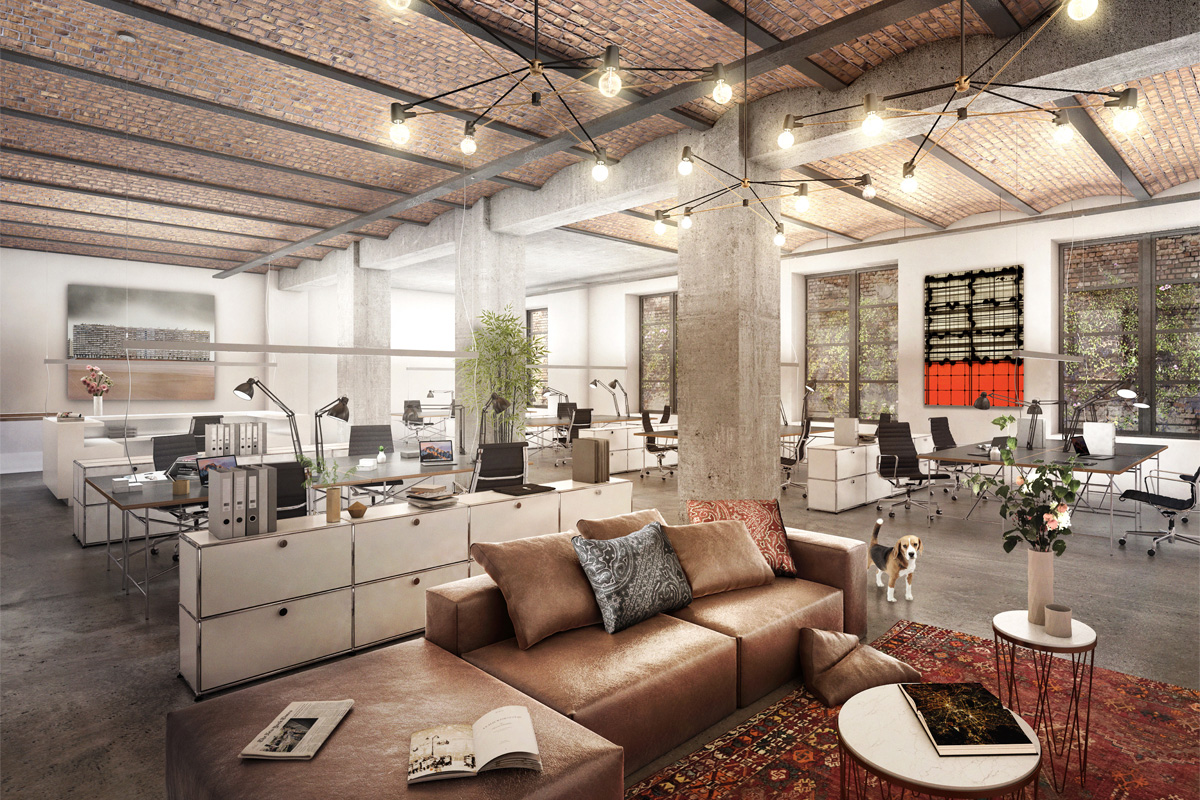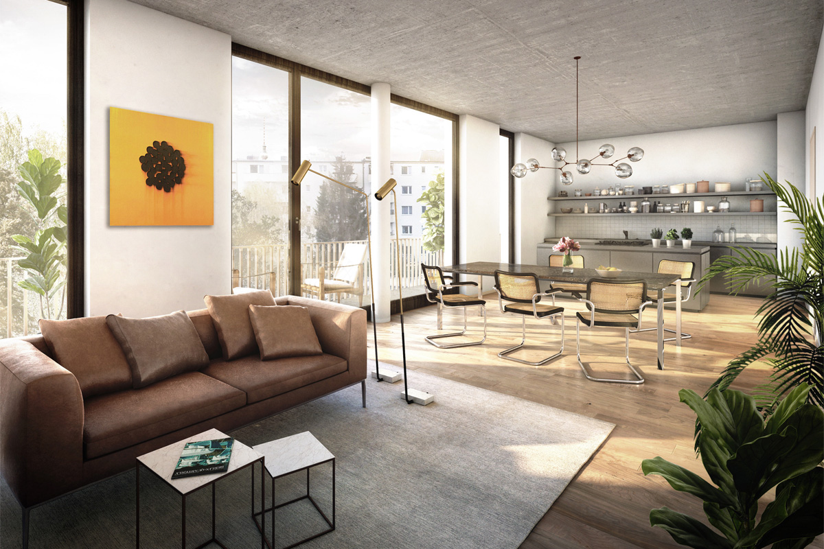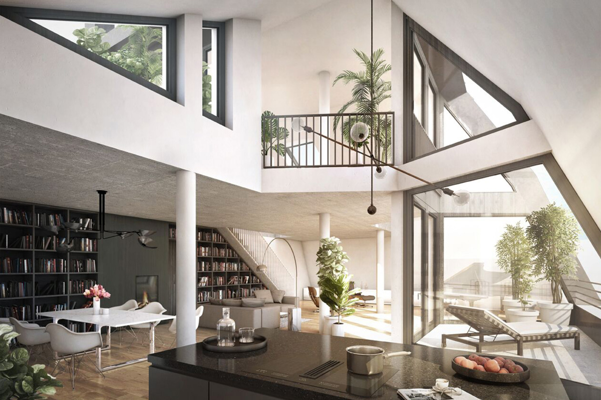 Die für Kreuzberg typische Nutzungsmischung verbindet die Strukturen der historischen Lofträume mit ihren hellen und offenen Grundrissen mit modernen, teils zweigeschossigen Räumen und Panoramafenstern im Atelier.