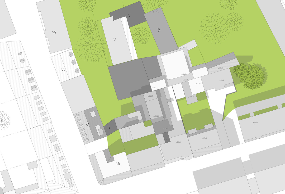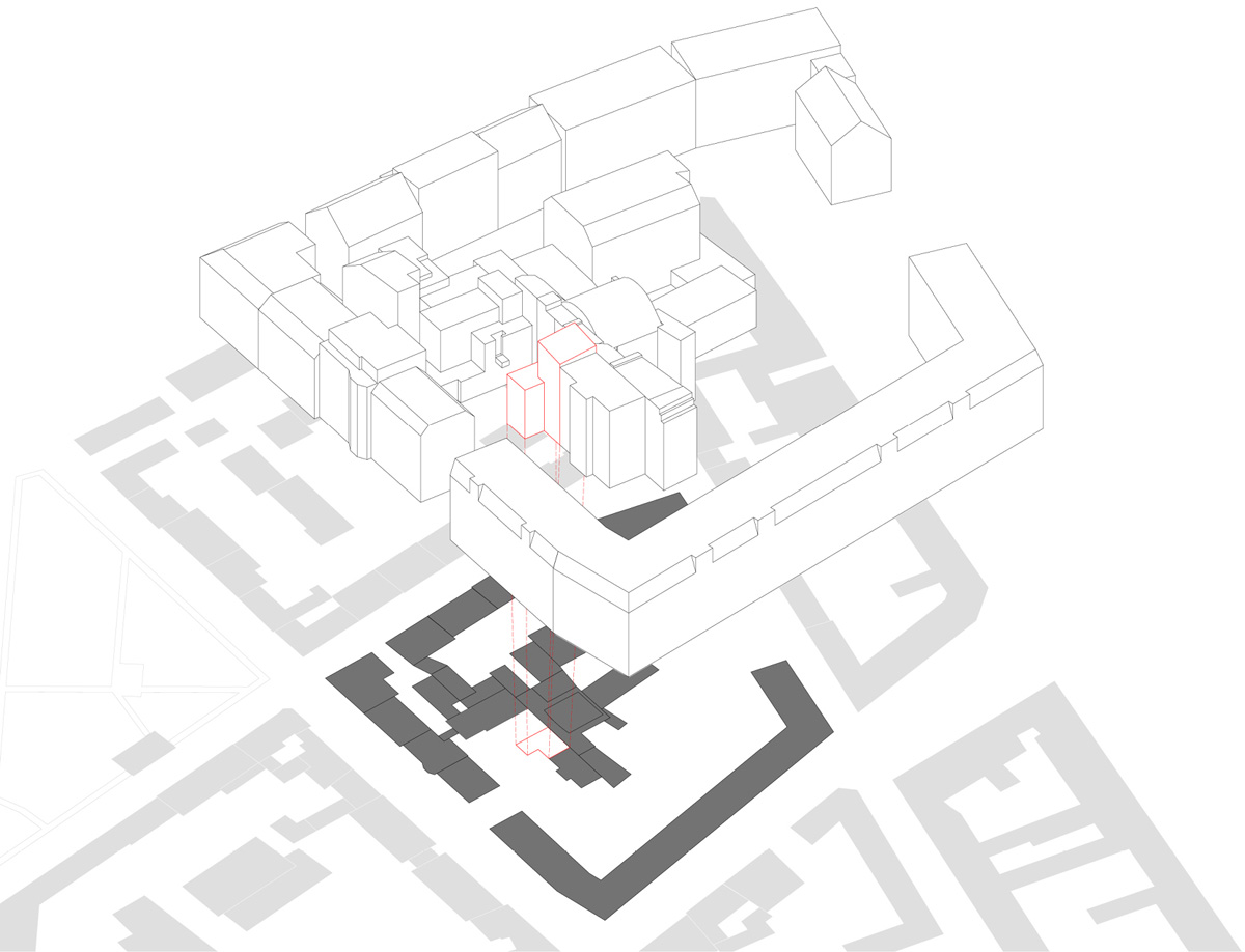 Die den Blockrand schließenden Häuser stammen aus unterschiedlichen Zeiten, in unmittelbarer Nähe überwiegen Plattenbauten, es finden sich aber auch zahlreiche Gebäude aus dem 18. und dem 19. Jahrhundert, der Blütezeit des damaligen „Spandauer Viertels“, das heute als Ensemble unter Denkmalschutz steht. Städtebaulich ist der Block als raumbildende Form gut ablesbar und rahmt die amorph in Höhe und Form vorhandene Hofbebauung, die gleichwohl strukturell die typischen Gliederungselemente von Seitenflügeln, Quergebäuden und Remisen erkennen lässt. Teile der vorhandenen Baukörper im Hof ragen turmartig in die Höhe mit Firstpunkten von bis zu 23m.
