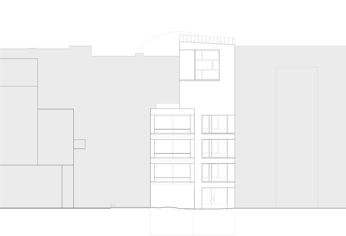Das Haus in der Auguststraße 47a in Berlin-Mitte ist eine Hofbebauung; die Nachbarparzelle ist als Feuerwehrzufahrt zur Straße hin offen. Es wurde als Wohnhaus mit sieben Geschossen für fünf Wohnungen geplant.