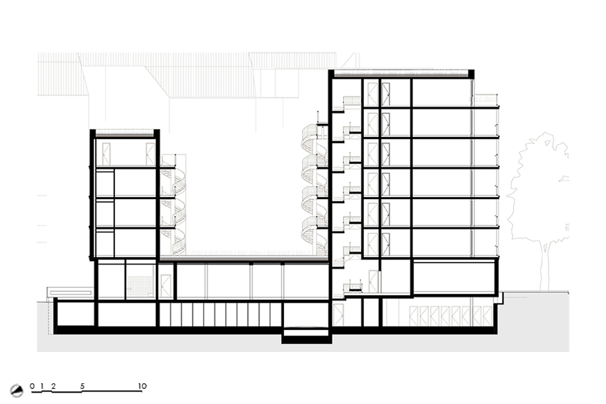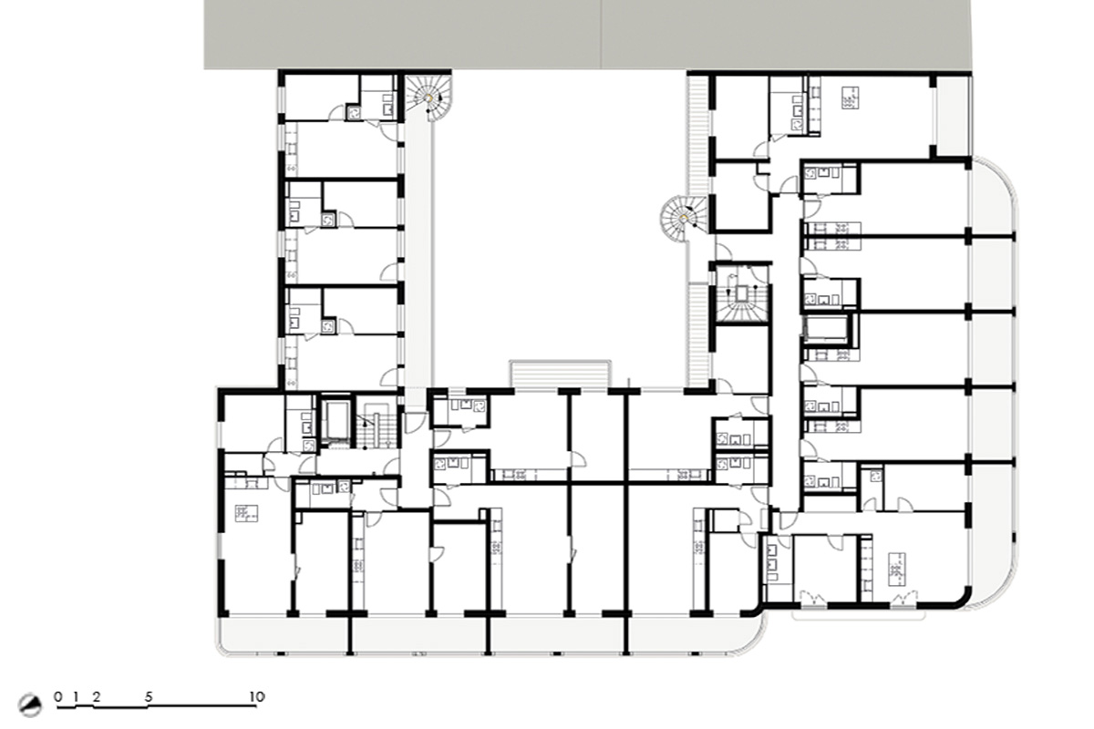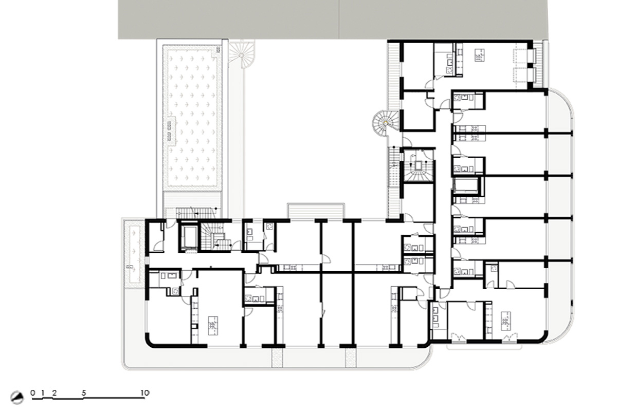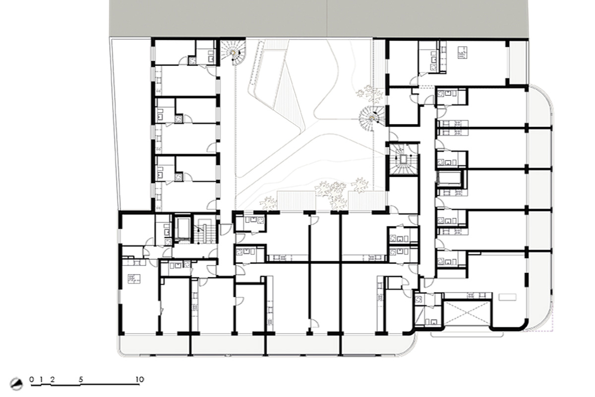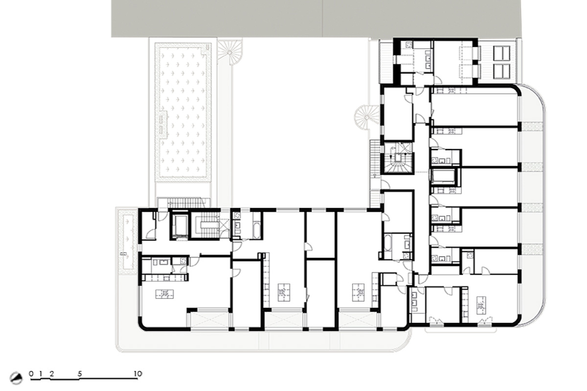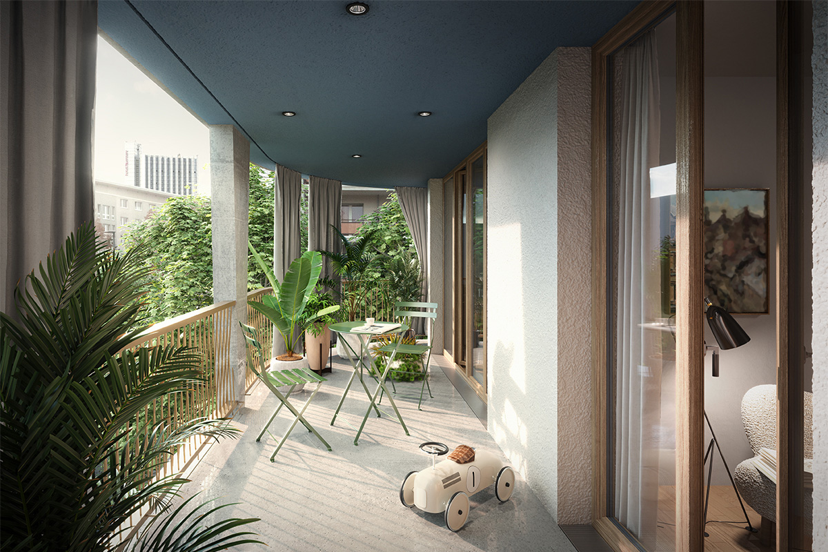 Für die Süd- und Westseite haben wir allen Wohnungen mit über 2 Metern Tiefe sehr großzügige Außenräume zugeordnet. Diese geräumigen, „vorgestellten“ Freisitze bilden die charakteristische Struktur zu den einzelnen „Logen“, die Pate stehen für die Benennung unseres Hauses als Logenhaus.
