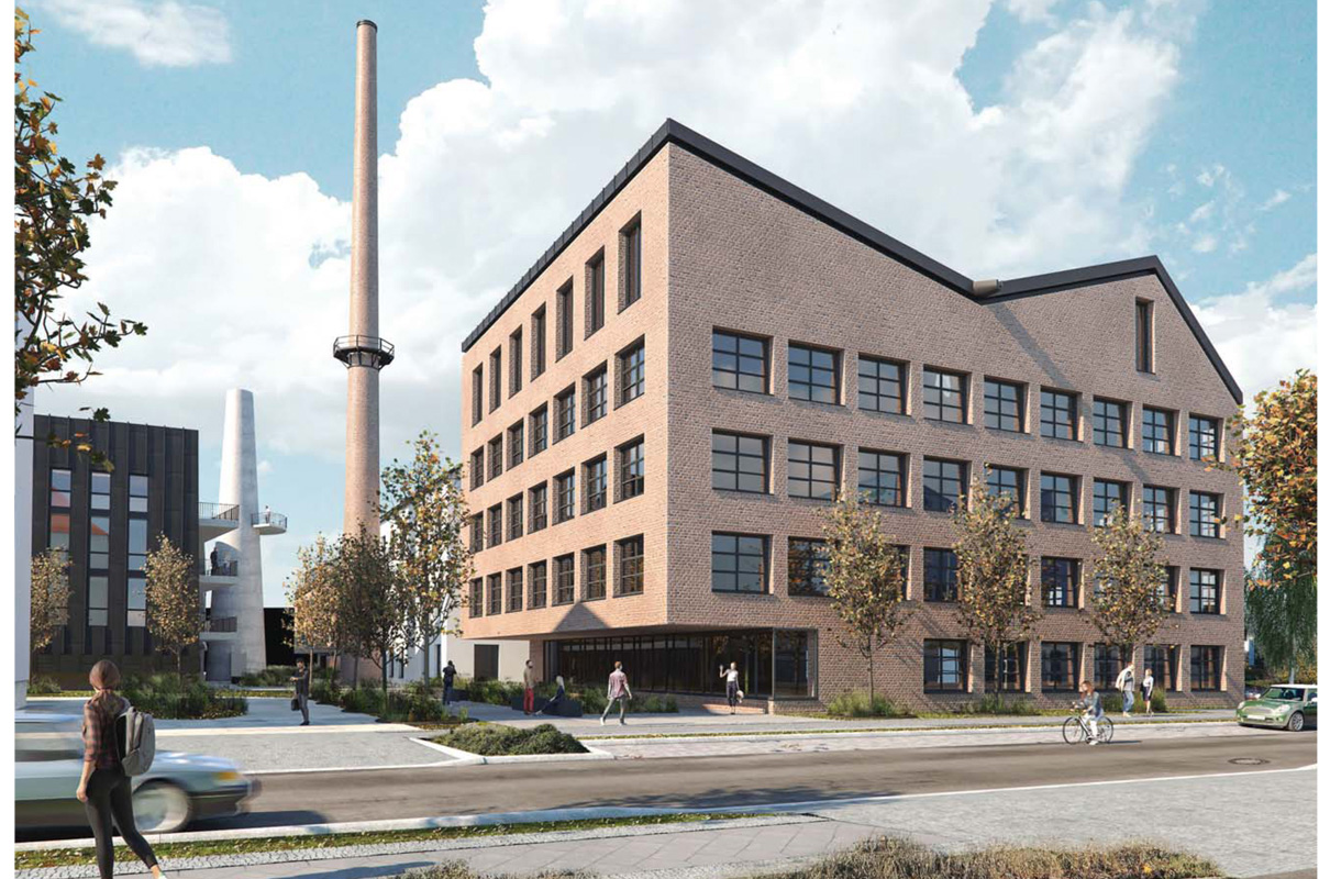 Die neu entstehenden Stadträume knüpfen hinsichtlich der Oberflächen und Materialien an die Tradition von Oberschöneweides Industriearchitektur an. Mit seinen prägnanten, teils gezackten, schwarzen Zinkblechdächern, Materialien wie Backstein und den großen Glasflächen in Pfosten- Riegelkonstruktion soll gemeinsam mit den Platz- und Gartenflächen ein atmosphärisch dichtes Bild eines modernen Gewerbeensembles entstehen.