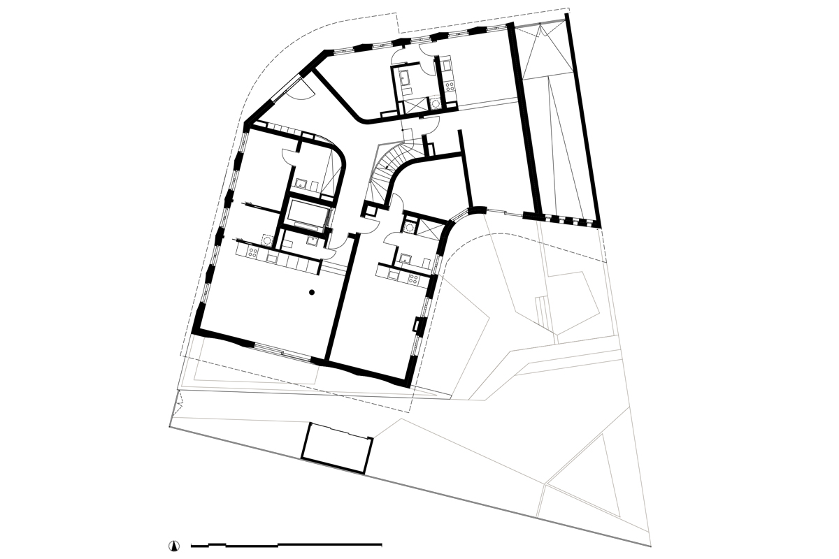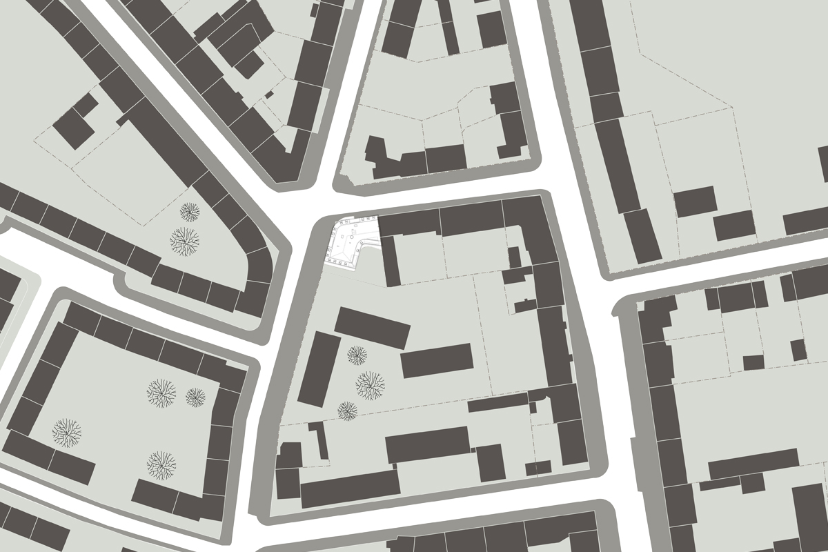 Die Entwurfsidee in der Stadtheidestraße war es, eine Stadthaus zu entwerfen, das die Stadtkreuzung komplettiert und die Qualitäten der westlich der Fehrbelliner Straße vorhandenen geschlossenen Bauweise mit öffentlichen Räumen entlang städtischer Parzellen mit den Vorzügen der offenen Bauweise mit an der Straße angrenzenden offenen Höfen und Gartenlandschaften verknüpft.