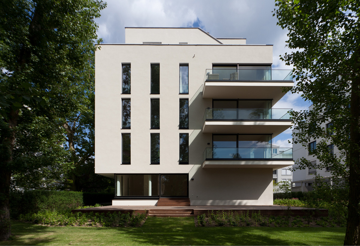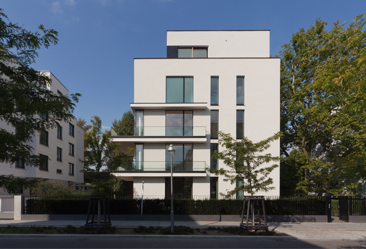Entwurfsziel war die Entwicklung eines modernen, in seiner Formensprache unaufdringlich eleganten Stadthauses mit großzügigen Wohnungen.