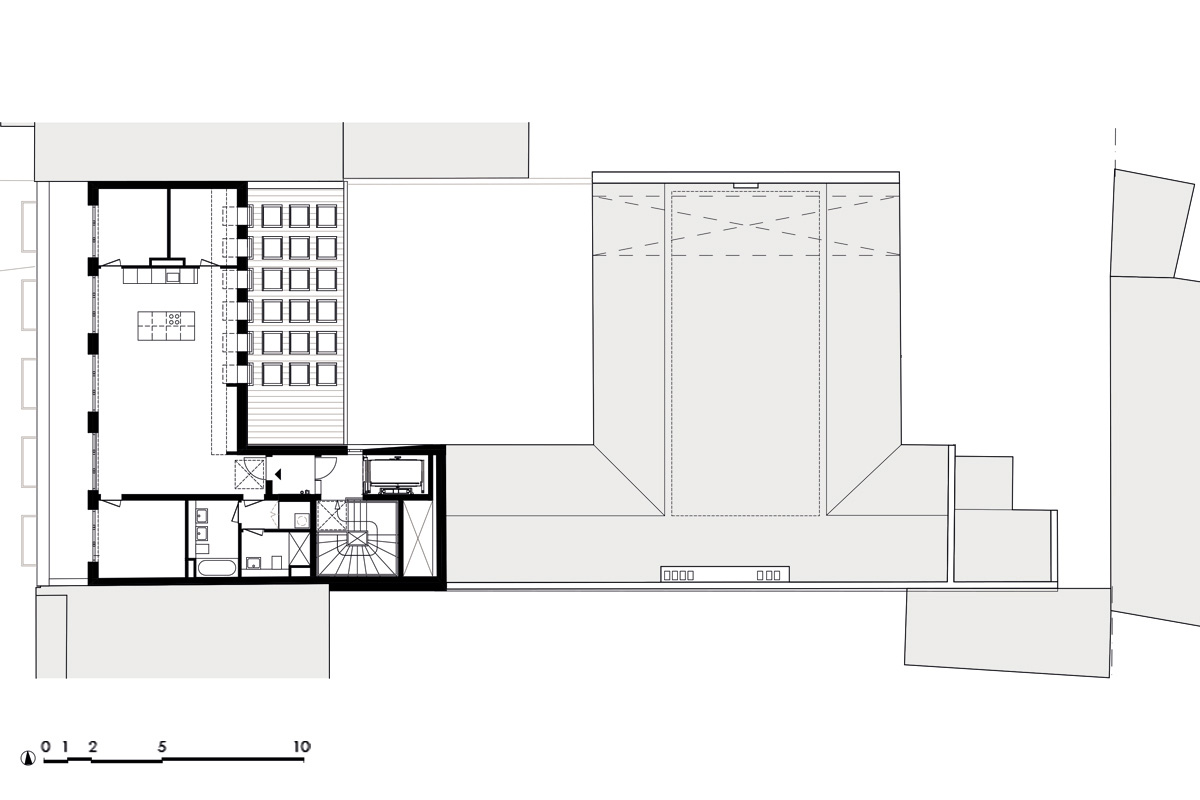 Das EG wird gewerblich als „Ferienloft“ genutzt. Im Staffelgeschoss wird eine große 4-Zimmer Wohnung geplant