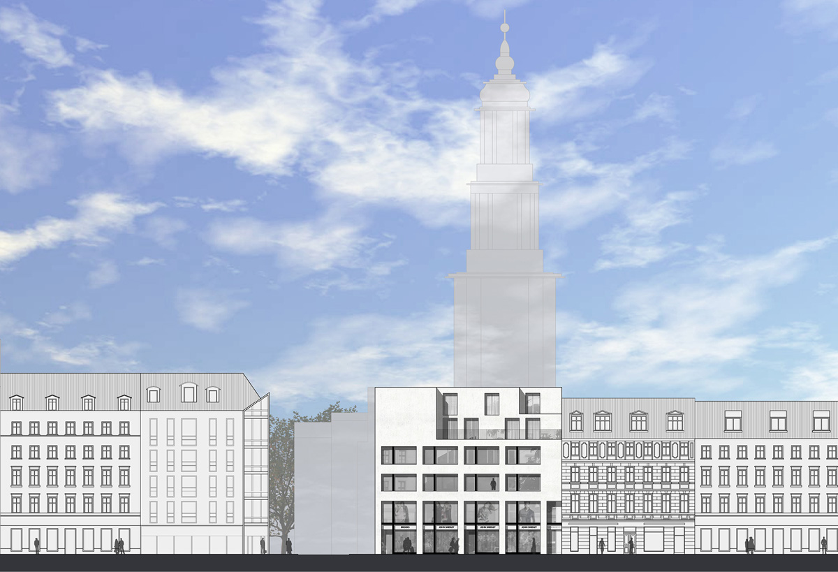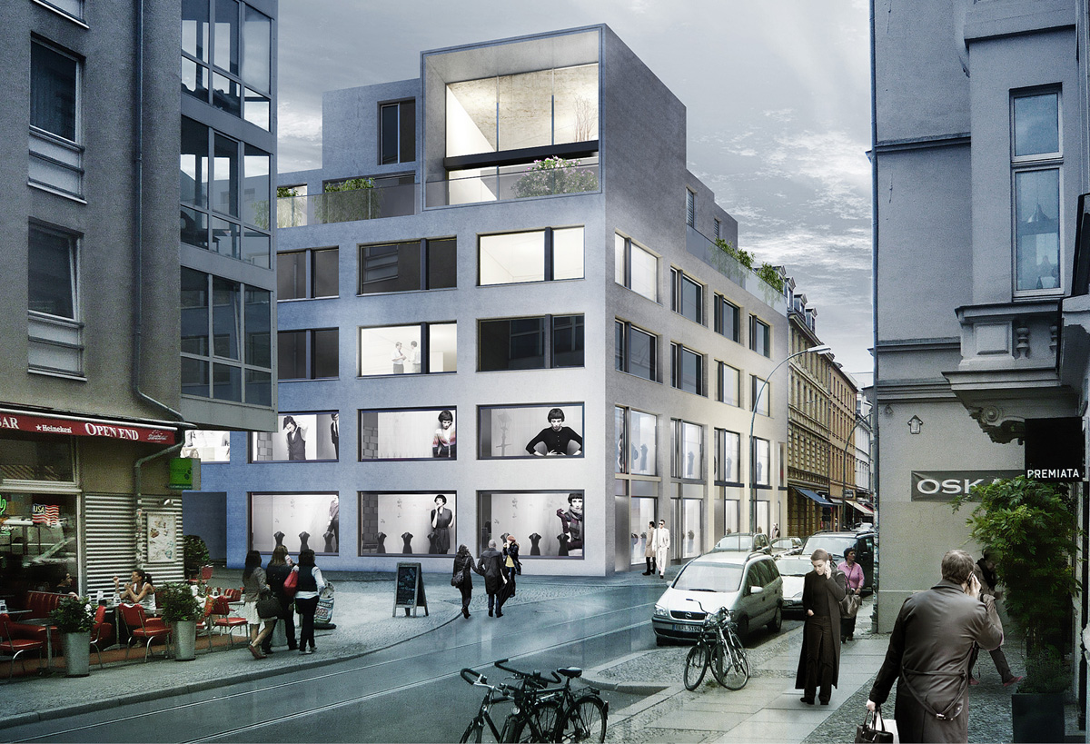 Für die Oranienburger Straße 9-10 in Berlin-Mitte wurde ein eingeladener Wettbewerb für ein Stadthaus mit Läden, Büros und Wohnungen ausgelobt.