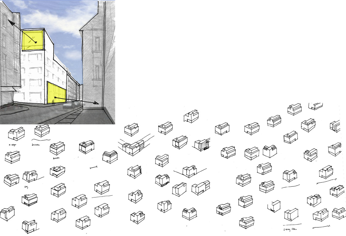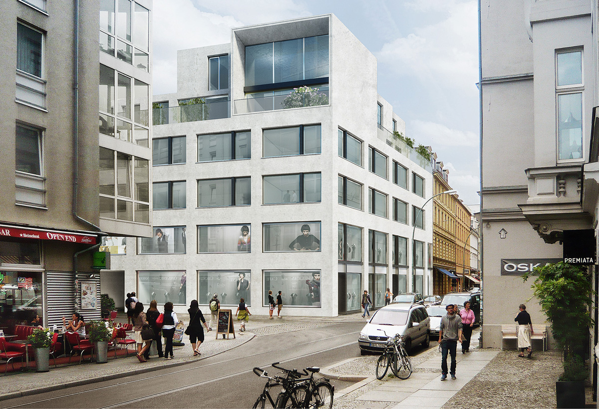 Vorgabe war der Entwurf eines Wohn- und Geschäftshauses auf sechs Etagen mit jeweils zwei Ebenen für den Einzelhandel, Büros und zum Wohnen. Das Grundstück an der Ecke zur Großen Hamburger Straße in der Spandauer Vorstadt in fußläufiger Entfernung zu Museumsinsel, Neuer Synagoge und Postfuhramt bot weite Blicke bis hin zum weiter westlich an der Oranienburger Straße gelegenen Monbijoupark.
