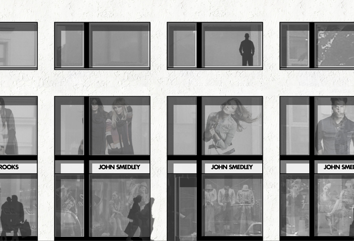 Die knapp sieben Meter hohen Schaufenster mit Bezug zur Oranienburger Straße, die großzügigen Bürofenster und das an der oberen Gebäudeecke platzierte zweigeschossige „Wohnschaufenster“ bilden die Prämissen für den Ausdruck des Hauses.
