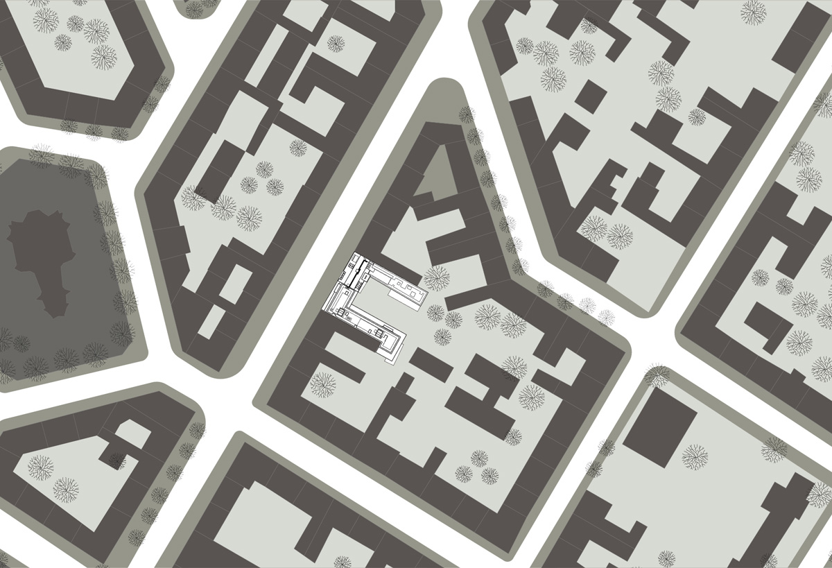 Die Häuser in der Kastanienallee 63-64 liegen in Berlin-Mitte am südlichen Ende der Straße nahe Zionskirche und Weinbergspark und sind in die typische Berliner Blockstruktur städtischer Parzellen eingebunden. Die Planung der Baulückenschließung in der Kastanienallee 63 war bereits abgeschlossen, als das benachbarte bebaute Grundstück der Kastanienallee 64 erworben wurde. Die beiden Häuser schließen den Stadtblock mit jeweils eigenem Vorderhaus, Seitenflügeln und Kopfgebäude zum großzügigen Hofgarten.
